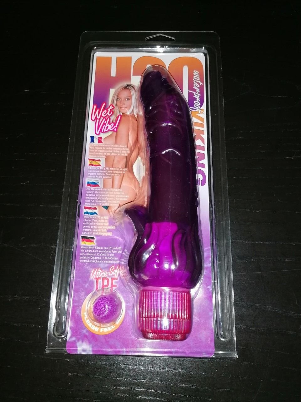 Wauw ook dit is weer een pracht exemplaar, echt een interessante uitvoering die je direct kunt zien door de doorzichtige verpakking die er omheen zit, hij is in het paars met een roze dop, er zit zelfs een proefstukje in waarmee je het materiaal kunt voelen, hij is waterproof, gemaakt van TPE en ABS, enorm flexibel, werkt met twee AA batterijen,