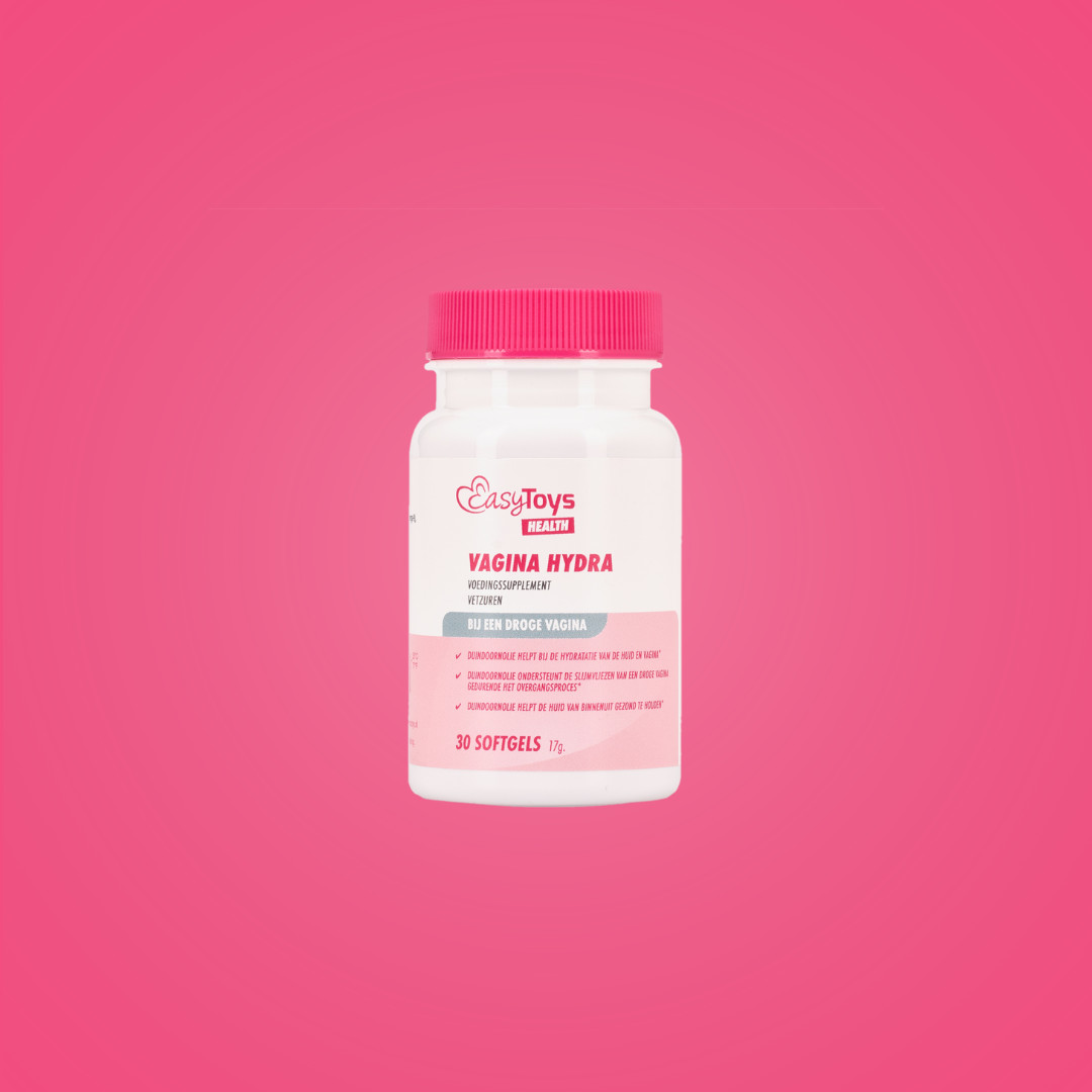 Vagina Hydra van EasyToys Health ondersteunt hydratatie en verzorging van binnenuit met duindoornolie, ideaal voor de intieme zones tijdens de overgang.