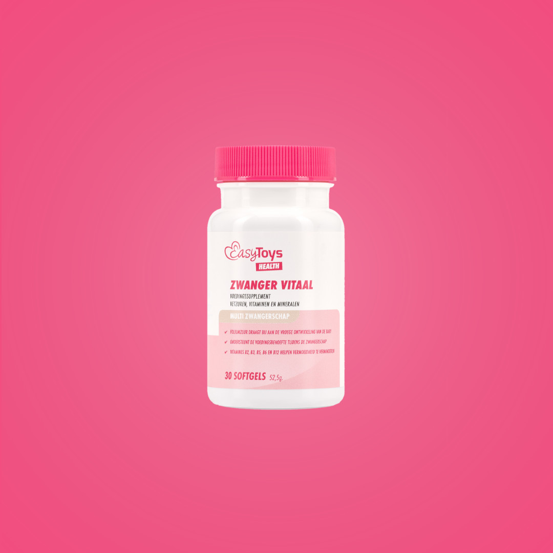 Zwanger Vitaal van EasyToys Health ondersteunt jou en je baby met DHA, foliumzuur, B-vitamines en meer voor energie en een gezonde ontwikkeling.