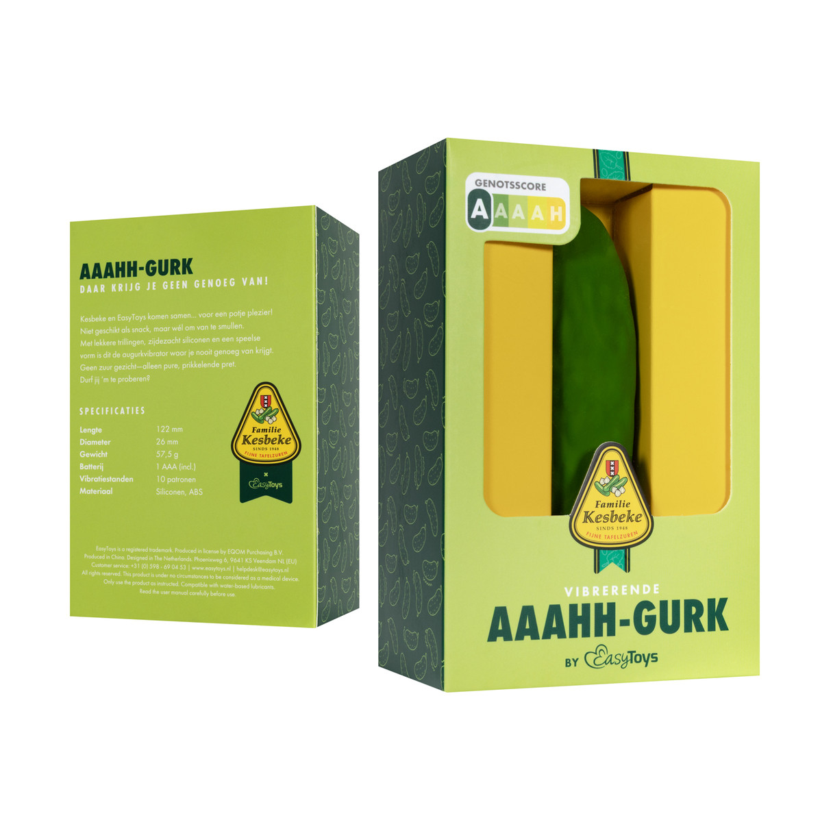 De AAAHH-GURK is 12cm lang en gemaakt van zijdezacht siliconen. Uiteraard heeft de toy het herkenbare ribbelige augurkendesign. De AAAHH-GURK heeft 10 vibratiestanden - van zacht zoemend tot intents prikkelend - en werkt op batterijen (meegeleverd). Voor slechts €14,99 haal je de AAAHH-GURK in huis – een must-have die niet mag ontbreken in jouw collectie!