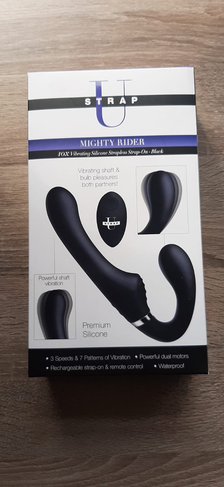 • Originele naam: Mighty Rider Vibrerende Strapless Strap-On - Zwart