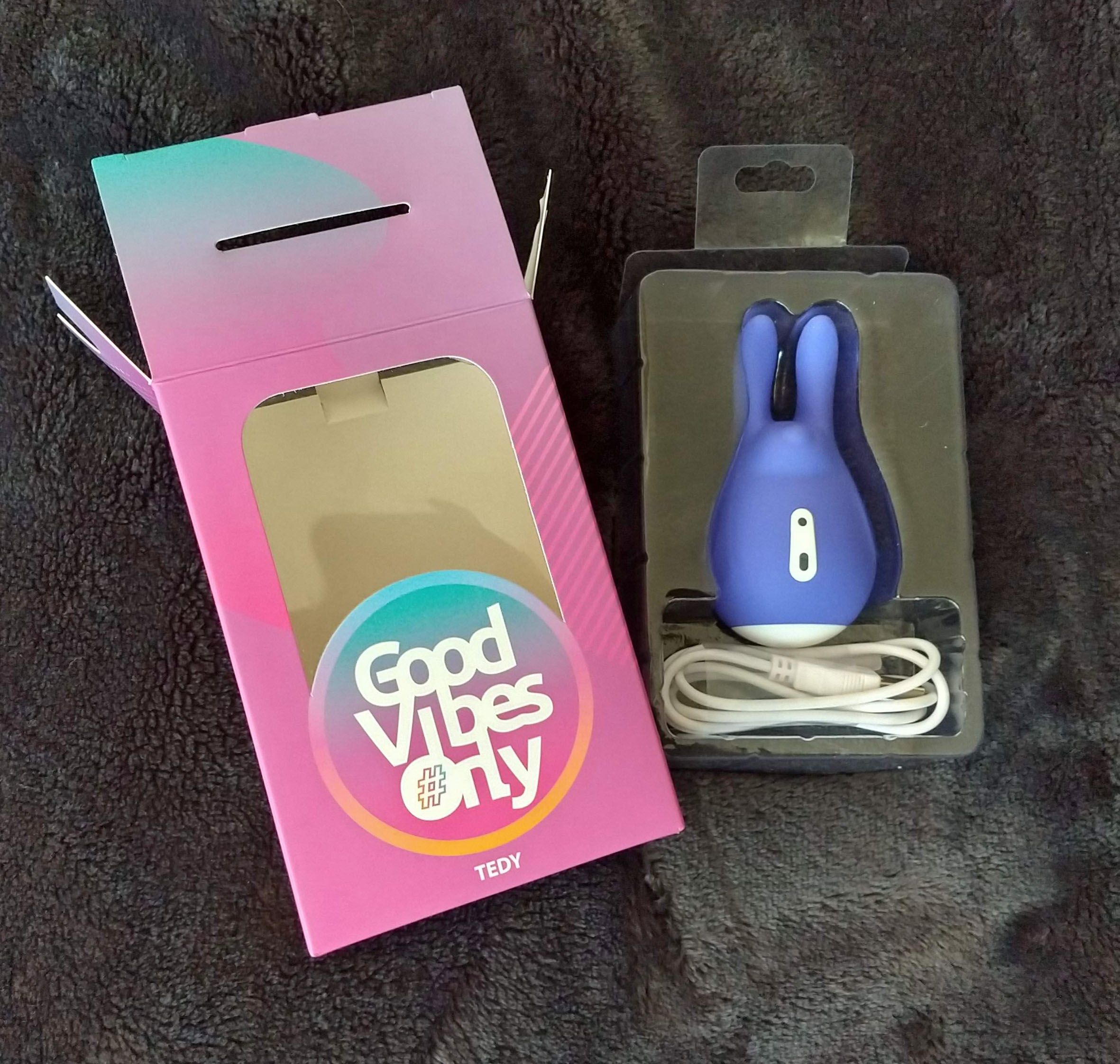 Tedy is je hipste clitoris stimulator en je liefste huisdiertje tegelijk. Met dit konijntje kun je jezelf goed verwennen, maar bijvoorbeeld ook je partner. Tedy heeft twee lange oren om op de juiste plekken stimulatie te bieden. De stimulator heeft 10 verschillende vibratiestanden en is waterdicht. Tedy is dus geschikt om onder de douche of in bad te gebruiken. Zet de vibraties aan door het bovenste knopje een paar seconden in te drukken. Zodra Tedy aan staat begint er een lampje te branden. Met de twee knopjes kun je wisselen tussen de vibratiestanden. Het onderste knopje druk je een paar seconden in om de stimulator weer uit te schakelen. De clitoris stimulator is oplaadbaar met de bijgeleverde USB-kabel. Maak de toy na gebruik goed schoon met toycleaner of milde zeep en warm water. Leg de vibrator daarna op een droge en stofvrije plek.