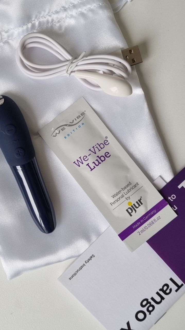 De Tango X is de nieuwste versie bullet vibrator van het merk We-Vibe. Het speeltje wordt door velen de meest krachtige mini vibrator ooit genoemd. Dit heeft te maken met de motor binnenin het speeltje. Zoals je gewend bent van dit merk, zijn de vibraties extra sterk en voelen ze erg diep aan. De Tango X heeft nu een nog betere vormgeving voor een gerichte clitoris stimulatie, is fluisterstil en heeft meerdere standen zodat je volop kunt variëren. Met 8 vibratiestanden en 7 vibratiepatronen is de Tango X een krachtige vibrator met een luxe design. Bovendien is de Tango X uitgevoerd met een travel lock systeem zodat de vibrator niet zomaar af zal gaan in tas of koffer. De top van deze mini vibrator kan op 2 manieren gebruikt worden. De spitste top gebruik je wanneer je directe en gerichte stimulatie wilt. De vlakkere kant verdeelt de vibraties meer over het oppervlak. Hoe laad je de We-Vibe op? Plaats het magnetische stekkertje op de oplaadpunten van Tango. Zorg ervoor dat de punten goed verbonden zijn. Doordat de oplader niet in de vibrator zit, kan het snel losraken. Begint er een oranje lampje naast het drukknopje te knipperen? Dan is Tango X bijna leeg. Laad hem op in 90 minuten, hierna heeft de toy een runtime van 2 uur. Hoe reinig je deze sextoy? Doordat de We-Vibe waterproof is, kun je hem eenvoudig en snel reinigen met water en toycleaner. Ook kun je ervoor kiezen om het seksspeeltje schoon te maken met een beetje milde zeep. Spoel de toy schoon, breng wat zeep of toycleaner aan en wrijf dit voorzichtig over de gehele vibrator. Spoel het vervolgens goed schoon. Wanneer er zeepresten achterblijven op je seksspeeltje, kan dit zorgen voor irritaties. Droog de We-Vibe Tango X daarna voorzichtig af. De We Vibe Tango X wordt geleverd in een luxe verpakking, samen met een toybag, een uitgebreide Engelstalige handleiding en een gratis proefzakje glijmiddel.